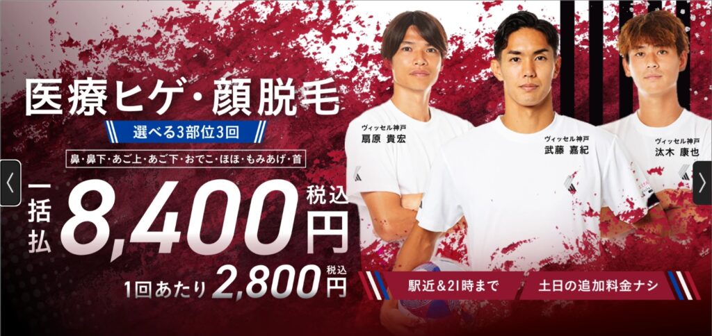 医療ヒゲ・顔脱毛(3部位 3回):8,400円(税込)