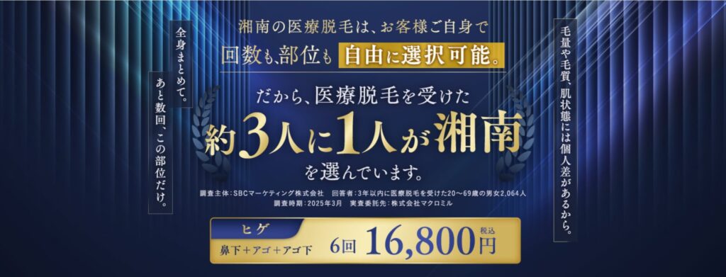 湘南美容クリニック医療脱毛ヒゲ3部位:16,800円/6回コスパ重視